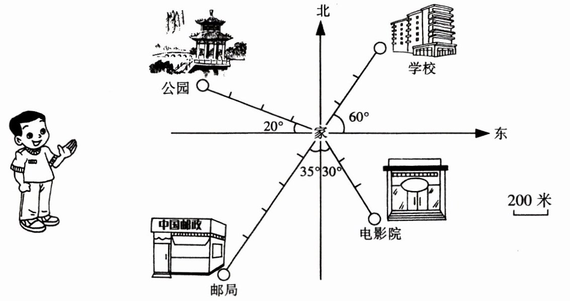 下图是张伟站在自己家观测几个建筑物的平面图。