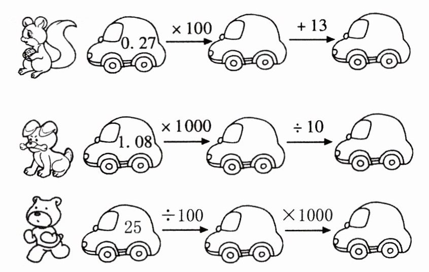 - 第一步:$0.27×100$,根据小数点向右移动两位,小数扩大$100$倍,可得$0.27×100 = 27$。