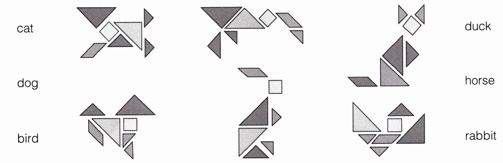 cat - 第一排第一个图案;dog - 第二排中间图案;bird - 第二排第一个图案;duck - 第一排第三个图案;horse - 第一排第二个图案;rabbit - 第二排第三个图案。