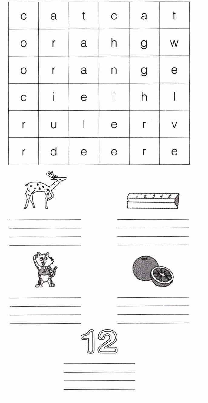 (假设图片对应顺序依次为这四个单词)依次在对应四线格内写: