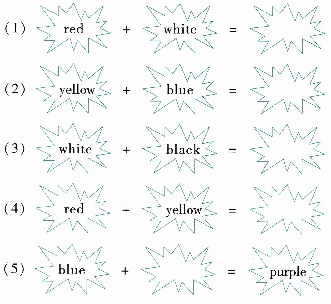 【解析】:本题主要考查颜色的英文单词认知及对应能力。解题的关键在于准确识别每个物体对应的颜色,并按照要求进行涂色。