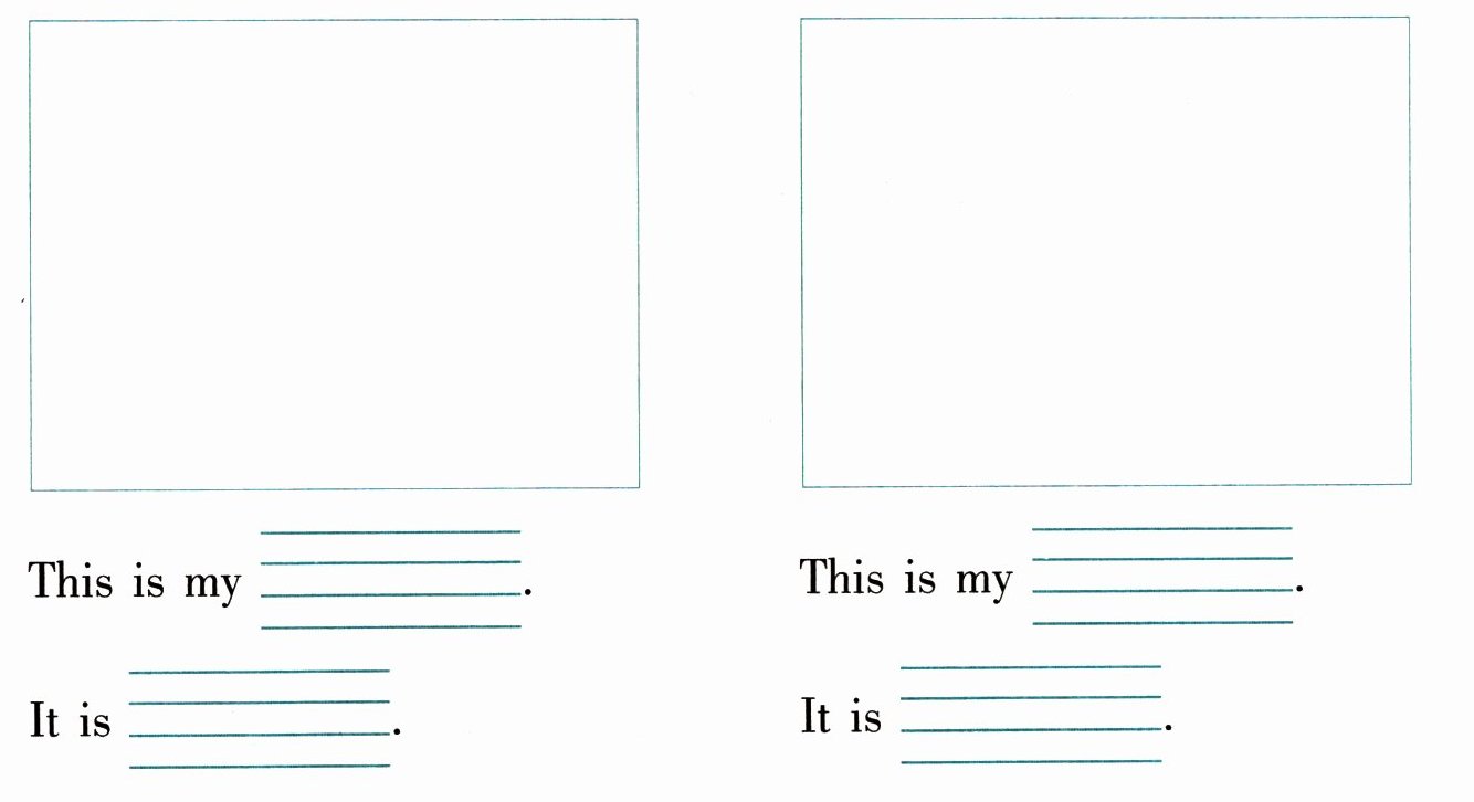 【答案】:This is my doll. It is pink. This is my book. It is blue.(答案不唯一,可根据自己实际喜欢的物品和颜色作答,此处以玩偶和书为例,颜色分别为粉色和蓝色)