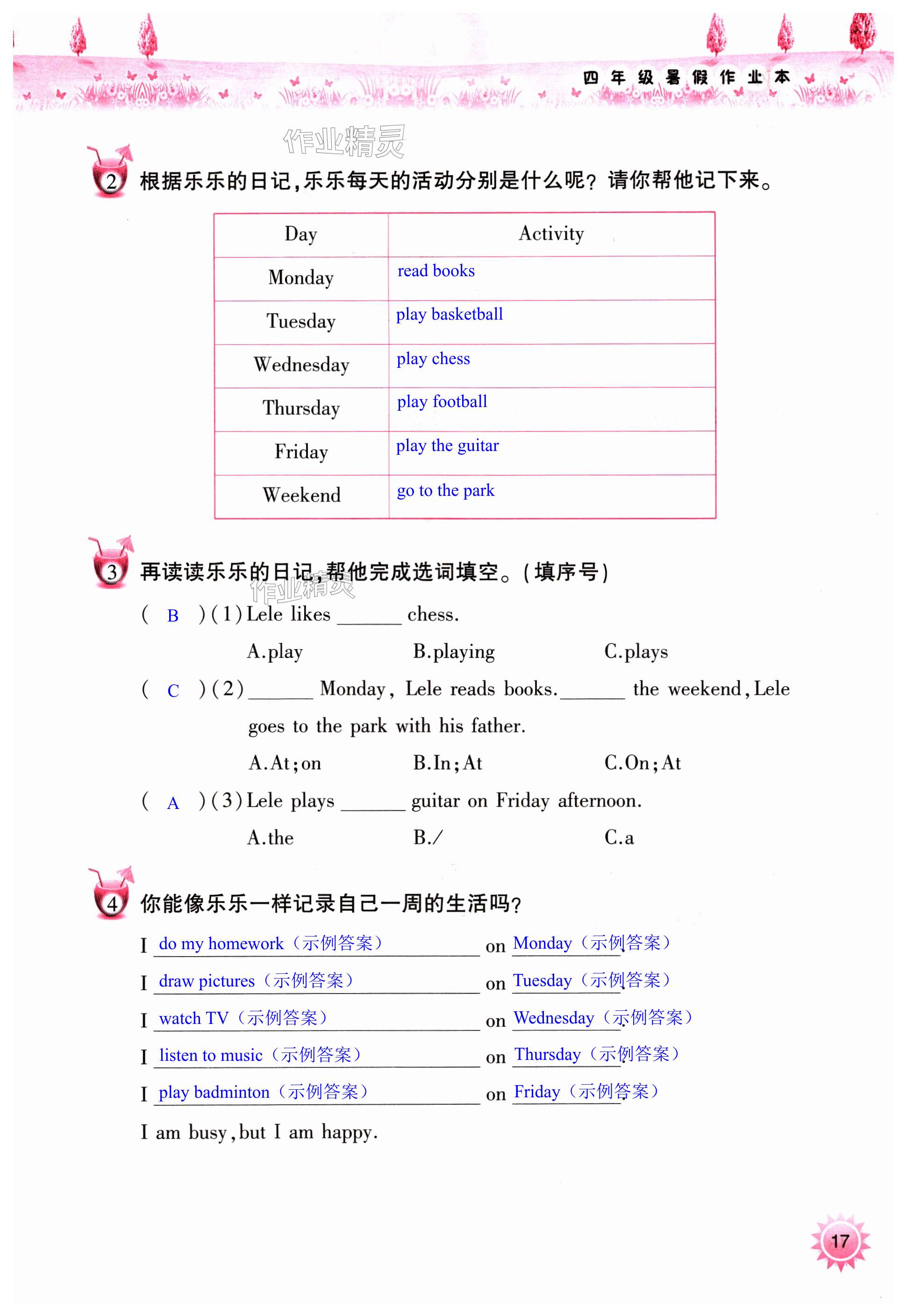 注:目前有些书本章节名称可能整理的还不是很完善,但都是按照顺序排列的,请同学们按照顺序仔细查找。练习册 2025年暑假作业本希望出版社四年级英语沪教版 答案主要是用来给同学们做完题方便对答案用的,请勿直接抄袭。