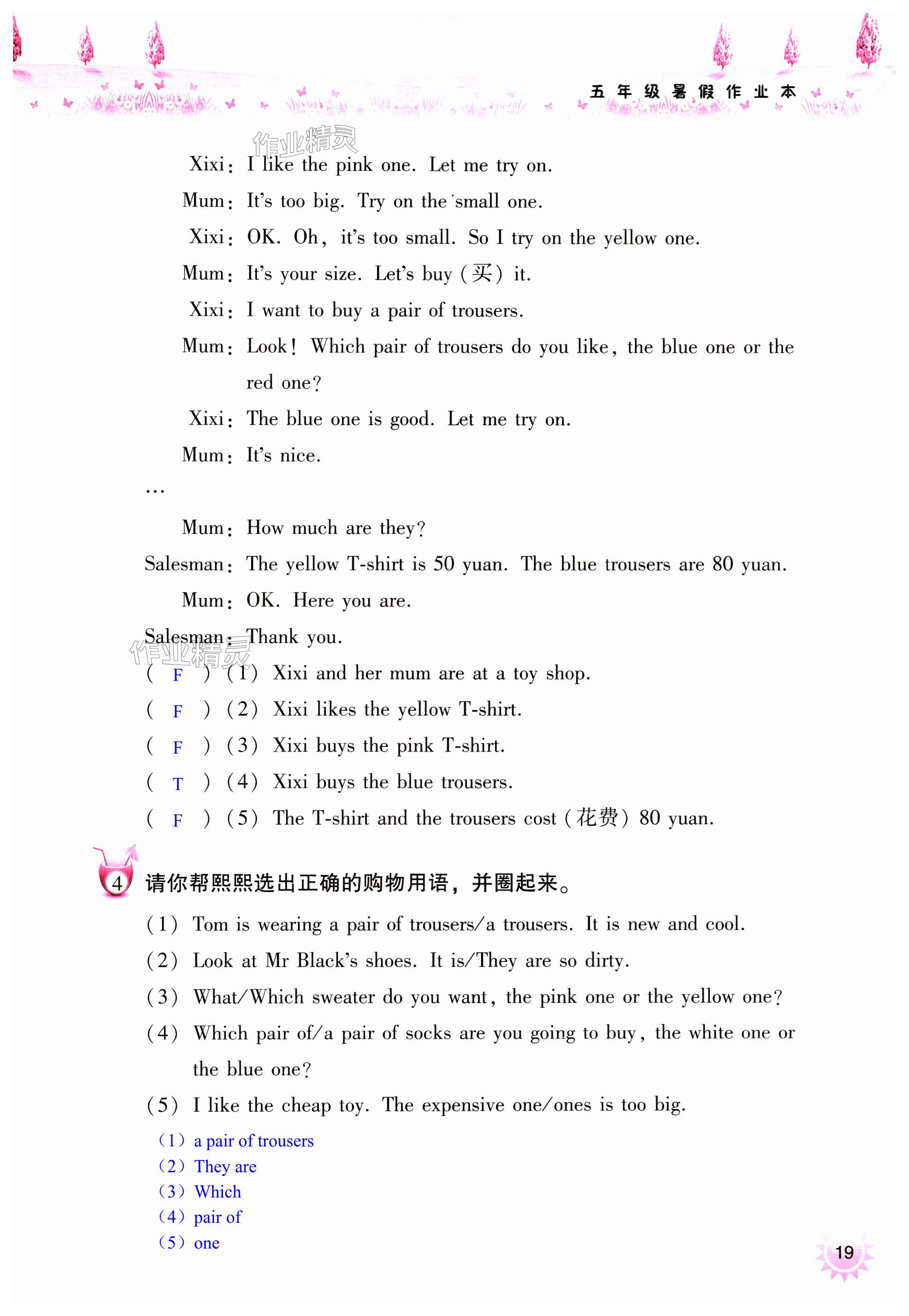 注:目前有些书本章节名称可能整理的还不是很完善,但都是按照顺序排列的,请同学们按照顺序仔细查找。练习册 2025年暑假作业本希望出版社五年级英语沪教版 答案主要是用来给同学们做完题方便对答案用的,请勿直接抄袭。