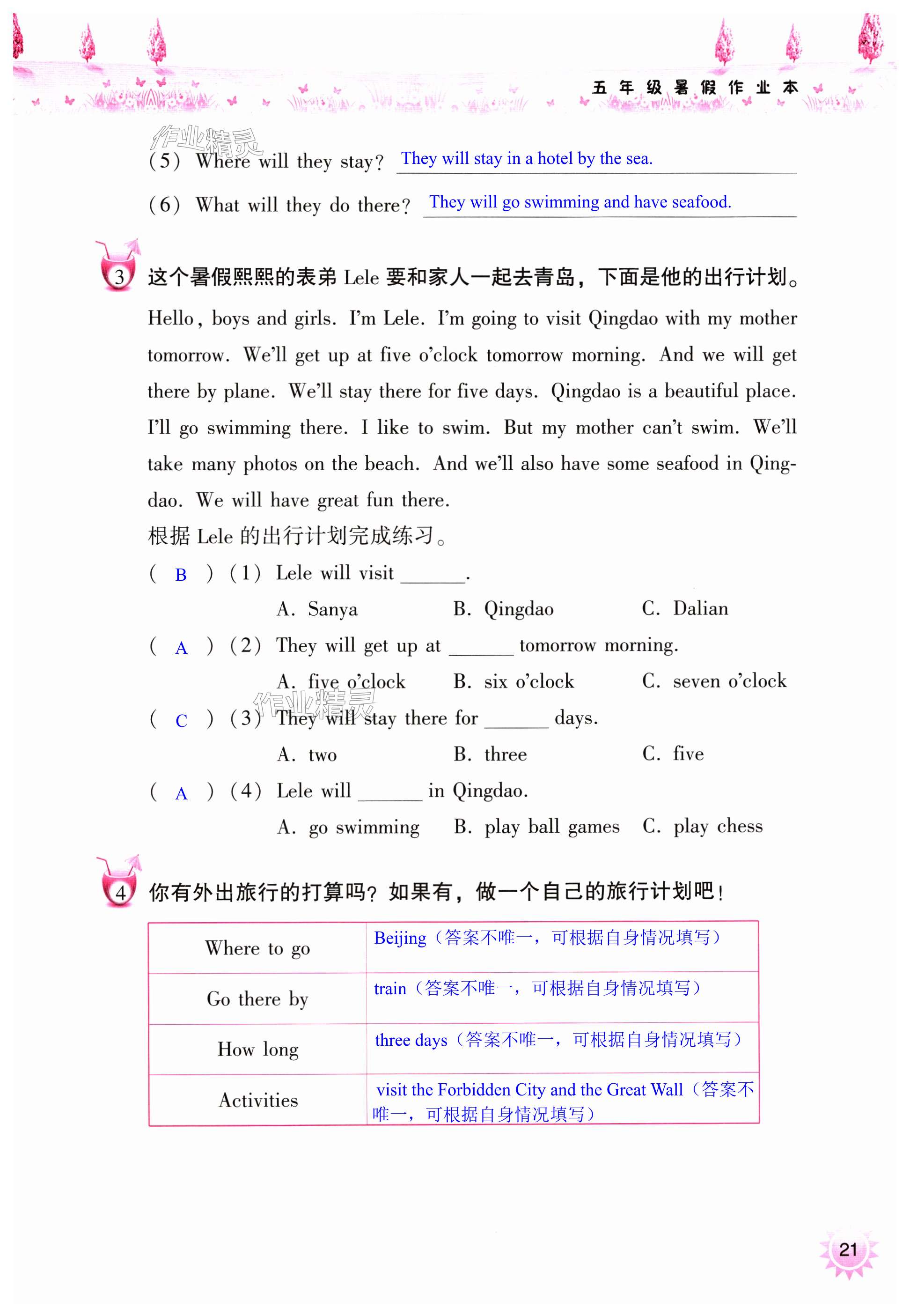 注:目前有些书本章节名称可能整理的还不是很完善,但都是按照顺序排列的,请同学们按照顺序仔细查找。练习册 2025年暑假作业本希望出版社五年级英语沪教版 答案主要是用来给同学们做完题方便对答案用的,请勿直接抄袭。
