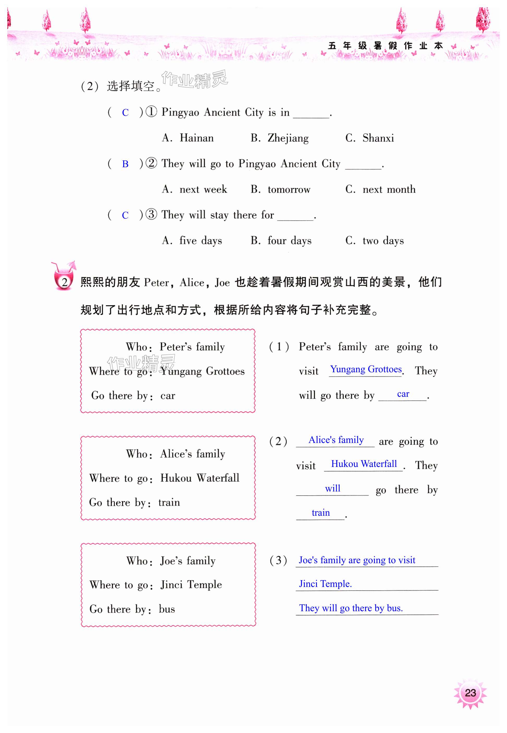 注:目前有些书本章节名称可能整理的还不是很完善,但都是按照顺序排列的,请同学们按照顺序仔细查找。练习册 2025年暑假作业本希望出版社五年级英语沪教版 答案主要是用来给同学们做完题方便对答案用的,请勿直接抄袭。