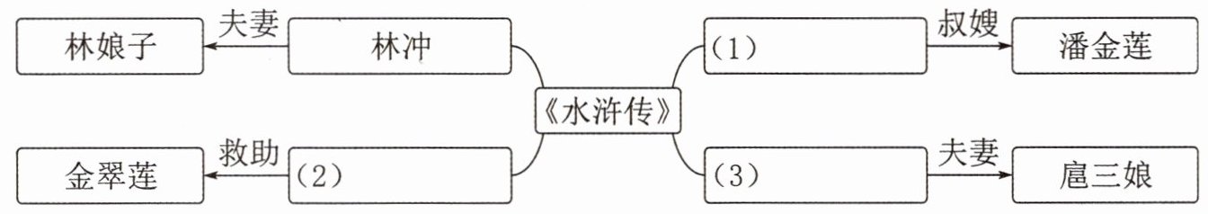 10. 请根据思维导图中的提示,填写《水浒传》中人物的姓名。