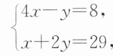 所以原方程组的解为 $\begin{cases} x = 2, \\ y = 4. \end{cases}$