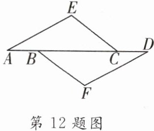 12. 如图所示,在$\triangle AEC和\triangle DFB$中,$\angle E = \angle F$,点$A$,$B$,$C$,$D$在同一直线上,有如下三个关系式:①$AE // DF$,②$AB = CD$,③$CE = BF$.