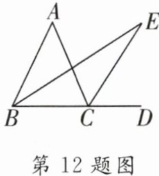 12.如图所示,在$△ABC$中,BE平分$∠ABD$,CE平分$∠ACD$,且$∠BEC= $$27^{\circ }$,求$∠BAC$的度数.