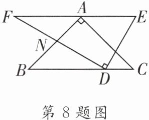 8.(2022·扬州)将一副直角三角板如图放置,若$EF// BC$,则$∠BND= $