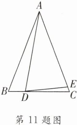 11.已知$△ABC$中,$∠B= ∠C$,D为边BC上一点(不与B,C重合),点E为边AC上一点,$∠ADE= $$∠AED,∠BAC= 44^{\circ }.$