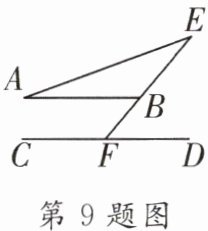 9.(浙江中考)如图所示,$AB// CD$,EF分别与AB,CD交于点B,F.若$∠E= $$30^{\circ },∠EFC= 130^{\circ }$,则$∠A= $
