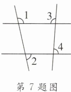 7. (贵州中考)如图所示,∠1+∠2= 180°,∠3= 104°,则∠4的度数是(