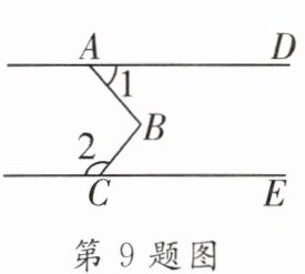 9. (山东中考)如图所示,AD//CE,∠ABC= 100°,则∠2-∠1的度数是__