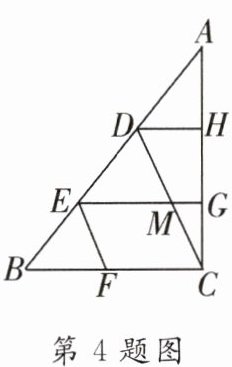 4. 如图所示,DH//EG//BC,DC//EF,那么与∠DCB相等的角的个数为(