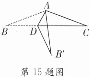 15. (2023·辽宁)如图,在三角形纸片ABC中,AB= AC,∠B= 20°,点D是边BC上的动点,将三角形纸片沿AD对折,使点B落在点B'处,当B'D⊥BC时,∠BAD的度数为______.
