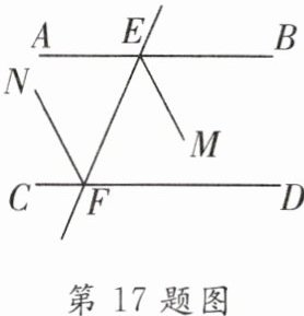 17. (8分)(湖北中考)如图所示,直线EF分别与直线AB,CD交于点E,F. EM平分∠BEF,FN平分∠CFE,且EM//FN.