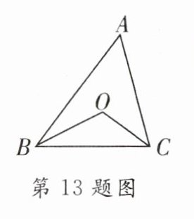 13. 如图所示,点O是△ABC的两条角平分线的交点,若∠BOC= 118°,则∠A的大小是__