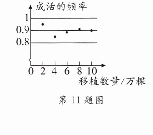 11. 某地区林业局要考察一种树苗移植的成活率,对该地区这种树苗移植成活情况进行调查统计,并绘制了如图所示的统计图,根据统计图提供的信息解决下列问题: