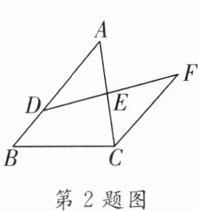 2. (山东中考)如图所示,D是AB上一点,DF交AC于点E,DE= FE,FC//AB,若AB= 4,CF= 3,则BD的长是 (