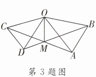 3. (2024·山东模拟)如图所示,在△OAB和△OCD中,OA= OB,OC= OD,OA>OC,∠AOB= ∠COD= 40°,连接AC,BD交于点M,连接OM.下列结论:①AC= BD ②∠AMB= 40° ③OM平分∠BOC ④MO平分∠BMC.其中正确的个数为 (