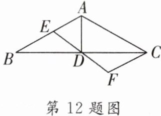 $ ∵△BDE≌△CDF $,$ ∴BE = CF = 2 $。$ ∴AB = AE + BE = 1 + 2 = 3 $。$ ∵AD⊥BC,BD = CD,AD = AD $,$ ∴△ABD≌△ACD $。$ ∴AC = AB = 3 $。