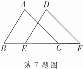 7. (2023·成都)如图,已知△ABC≌△DEF,点B,E,C,F依次在同一条直线上.若BC= 8,CE= 5,则CF的长为____