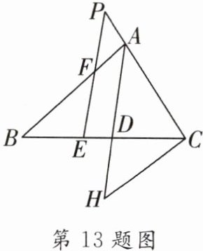 13.在△ABC中,AD平分∠BAC,E是BC上一点,BE= CD,EF//AD交AB于F点,交CA的延长线于P,CH//AB交AD的延长线于点H,