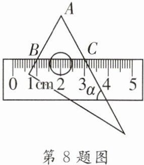 8.(2023·江西)将含30°角的直角三角板和直尺按如图所示的方式放置,已知∠α= 60°,点B,C表示的刻度分别为1cm,3cm,则线段AB的长为____