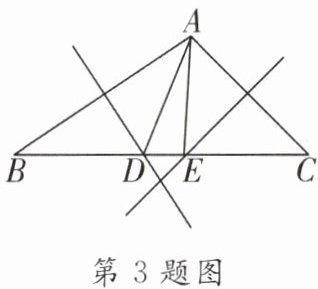 3. 如图所示,在△ABC中,AB的垂直平分线交BC于D,AC的中垂线交BC于E,∠DAE= 20°,则∠BAC的度数为(