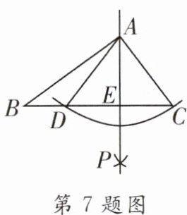 7.(2023·营口)如图,在△ABC中,以点A为圆心,AC长为半径作弧,交BC于C,D两点,分别以点C和点D为圆心,大于$\frac{1}{2}CD$长为半径作弧,两弧交于点P,作直线AP,交CD于点E,若AC= 5,CD= 6,则AE=