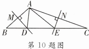 10. 如图所示,在△ABC中,边AB,AC的垂直平分线分别交BC于D,E.