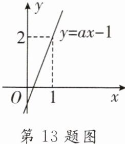 13.如图所示,函数$y = ax - 1的图象过(1,2)$,则不等式$ax - 1 > 2$的解集是____