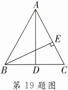 19. (9分)如图所示,在$\triangle ABC$中,$AB = AC$,$AD是BC$边上的中线,$BE \perp AC于点E$.