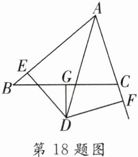 18. (8分)如图所示,$\triangle ABC$中,$AD平分\angle BAC$,$DG \perp BC且平分BC$,$DE \perp AB于E$,$DF \perp AC于F$.