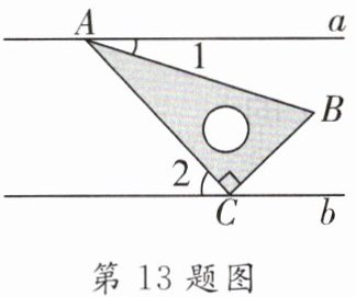 13. (湖南中考)已知直线$a // b$,将一块含$30^{\circ}角的直角三角板ABC$按如图所示方式放置($\angle BAC = 30^{\circ}$),并且顶点$A$,$C分别落在直线a$,$b$上,若$\angle 1 = 18^{\circ}$,则$\angle 2$的度数是__