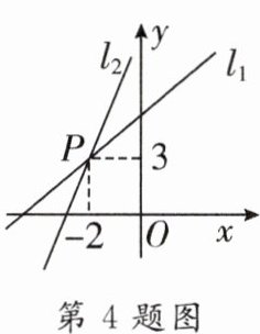 4. (2024·贵州模拟)如图所示,一次函数$y = k_1x + b_1$的图象$l_1$与$y = k_2x + b_2$的图象$l_2$相交于点$P$,则方程组$\begin{cases}y = k_1x + b_1,\\y = k_2x + b_2\end{cases} $的解是(
