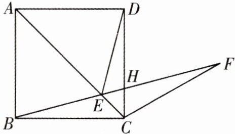 10. 如图所示,在正方形ABCD的对角线AC上取一点E,使得∠CDE= 15°,连接BE并延长BE到F,使CF= CB,BF与CD相交于点H,若AB= 1,有下列结论:①BE= DE ②CE+DE= EF ③$S_{△DEC}= \frac{1}{4}-\frac{\sqrt{3}}{12}$. 则其中正确的结论有( )