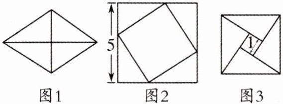6. (北京中考)把图1中的菱形沿对角线分成四个全等的直角三角形,将这四个直角三角形分别拼成如图2,图3所示的正方形,则图1中菱形的面积为____