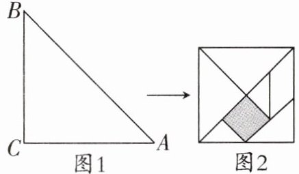 7. (2024·山东模拟)七巧板是大家熟悉的一种益智玩具.用七巧板能拼出许多有趣的图案.小李将一块等腰直角三角形硬纸板(如图1所示)切割七块,正好制成一副七巧板(如图2所示).已知AB= 40cm,则图中阴影部分的面积为(