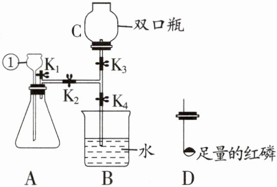 。(5) C中收集满氧气后,打开弹簧夹${K_{1}}$、${K_{4}}$,关闭${K_{2}}$、${K_{3}}$,其中打开${K_{1}}$的目的是