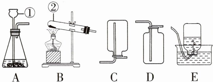 (5) 实验室用醋酸钠和碱石灰两种固体混合加热制得甲烷气体,反应物是固体,反应条件是加热,所以发生装置选B;甲烷难溶于水,可用排水法收集,即收集装置选E;甲烷密度比空气小,也可用向下排空气法收集,即收集装置选C。