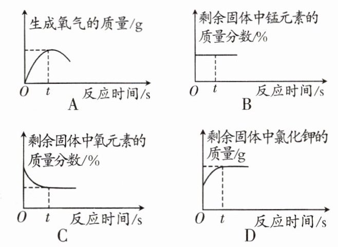 9. (2024·重庆期末) 某同学误将少量${KMnO_{4}}$当成${MnO_{2}}$,加入${KClO_{3}}$中进行加热制取氧气,部分物质质量随时间变化如图所示。下列关于该过程的说法正确的是 (