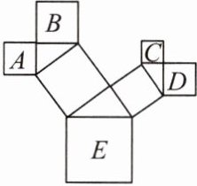 4. 如图是一棵美丽的勾股树,其中所有的四边形都是正方形,所有的三角形都是直角三角形,若正方形 A,B,C,D 的边长分别是 3,5,2,3,则正方形 E 的面积是__
