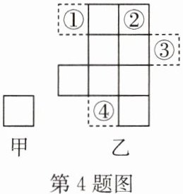 4. 图甲和图乙中所有的小正方形都全等,将图甲的正方形放在图乙中①②③④的某一位置,使它与原来 7 个小正方形组成的图形是中心对称图形,这个位置是(