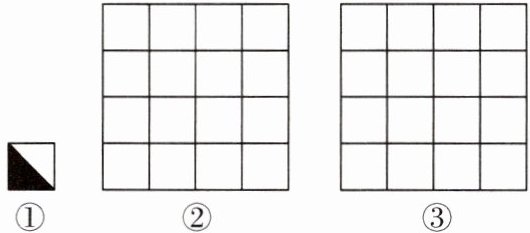 7. 如图②是 4×4 网格,每个小正方形的边长都为 1,请用图案①作为基本图案,通过平移、轴对称、旋转变换,设计两个不同的精美图案,使它们满足:①既是轴对称图形,又是中心对称图形;②所作图案的阴影部分面积为 4.