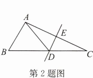 2. 如图,在△ABC 中,DE 是 AC 的垂直平分线,且分别交 BC,AC 于点 D,E,∠B= 60°,∠C= 25°,则∠BAD 的度数为
