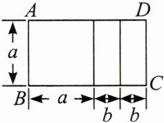 15. 如图,由一个边长为 $ a $ 的正方形与两个长、宽分别为 $ a $,$ b $ 的小长方形拼接成一个大长方形 $ ABCD $,利用大长方形 $ ABCD $ 面积的不同求法,写出一个有关多项式的因式分解的等式:______。