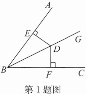 1. 如图,已知 BG 是∠ABC 的平分线,DE⊥AB 于点 E,DF⊥BC 于点 F,DE= 6,则 DF 的长度是(
